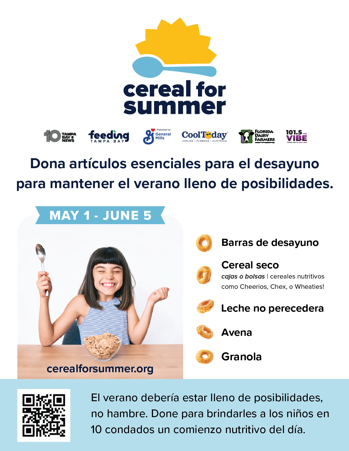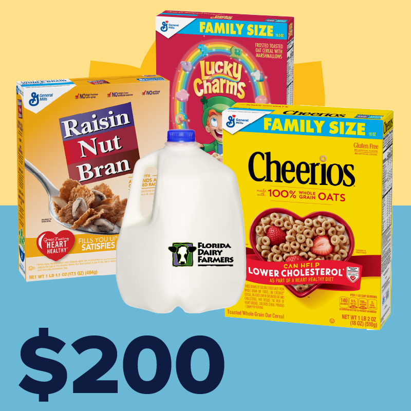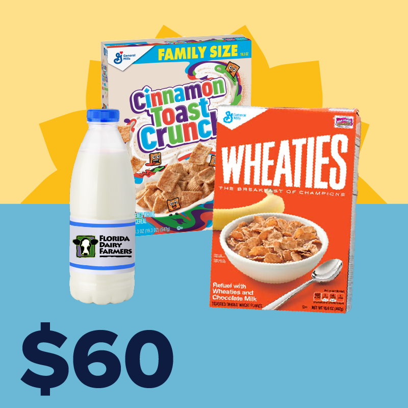 Thanks to the generous support of the Florida Dairy Farmers, every dollar you give will be matched—up to $10,000—doubling your impact. Together, we’re providing not just cereal but its perfect pair, milk, for a balanced, nutritious start to the day.